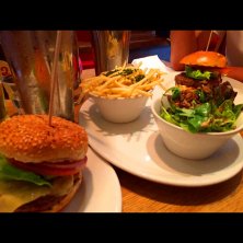 ロンドンのちょっと高級ハンバーガーチェーンにて。注文してから作るのでフレッシュです。きちんとミディアム^ ^