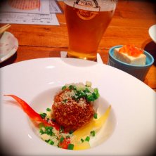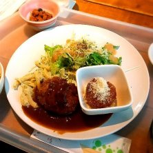 日替わりの粘ランドランチ 本日はデミグラスソースハンバーグでした。 ハンバーグのお隣は名物納豆コロッケです。 納豆、美味しかった(๑´ڡ`๑)