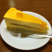 コストコでマンゴームースのケーキ買いました✨ ムースとろけて、マンゴーちゃんと入っててうまうまぁー(灬˘╰╯˘灬)♥。・゚ 最高✨