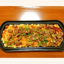 ずっと気になってたから買ったんだけど、お肉いっぱい入ってる✨ かなりガッツリのガーリックライスやけどお昼に旦那さまと味見したら美味しい♡ これは正解ψ(๑'ڡ'๑)ψ