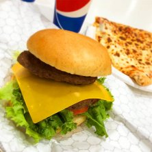 久々にコストコヾ(*´∀`*)ノ チーズバーガー¥680、スライスピザ¥300、ドリンクバー¥60。