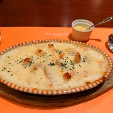 先日のランチ☕️ 友達はシーフードカレー、私は鮭とほうれん草のクリームパスタ。ブルーチーズがほんのり香って美味しかった。 来週からキッチンリフォームが始まるので片付けを始めたけれど、食器どうしよう…