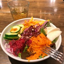 農園サラダバー🥗 久しぶりに伺ったらサラダバーのお皿が大きくなってました😊 赤いのはビーツとキヌアのマリネ、ほんのり甘くてクセが無いのに栄養満点です☝️