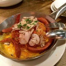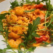 ルッコラとエビのクリームトマトパスタ。