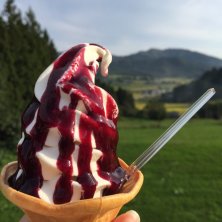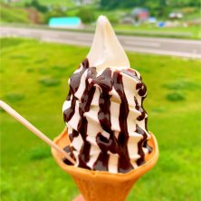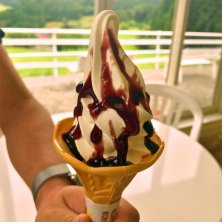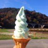 ブルーベリートッピングのソフトクリーム。 岩手の山々をバックにいただきました〜 美味しかったです♪