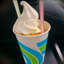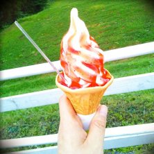 昨日のドライブの時に食べた ソフトクリームのイチゴソースかけ 美味しかったよ~(*^O^*)