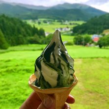 帰省してます。 涼しいというか朝晩寒いくらいです(笑) 昨日は祖母のホームに寄った帰りにソフトクリーム❤️私のは桑抹茶。 景色も最高!