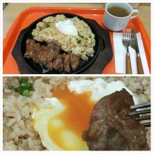 月見ビーフステーキ~♪980円 Pasar守谷に改装されてからは初めて来ました♪ 意外と知られてないんですが、高速道路からだけでなく一般道からもサービスエリア施設を利用出来ます。(各SAで要確認!) ステーキはまあまあ美味しいんですが、ソースはもう少し多めでお願いしたい。 半熟玉子の乗ったガーリックライスは茨城らしくレンコン入り。 ニンニク控えめで食べやすいです♪ 次回は親子丼のお店に! #肉