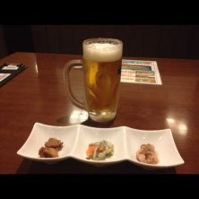 たのんだ「串焼き盛り合わせ」が30分たってもこないので、キャンセルしたら、お詫びの生ビール。釈然としないけど。