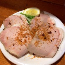 ローストポーク香味パウダー。これはもう自家製ハム!香味パウダーでやや中華よりになってます。テレビで見たことある毛沢東スペアリブ(だったかしら)くらいもっと香味パウダーかけてくれてもいいですよー!中華よりだと思ってなかったけど注文したこぼれ紹興酒とぴったり合ってよかったです。