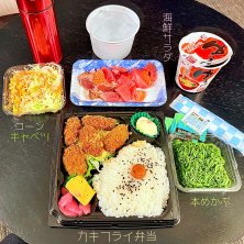晩ご飯…カキフライ弁当🦪😋 &海鮮サラダ😋