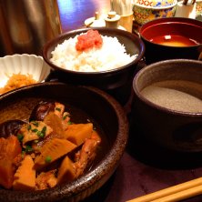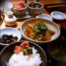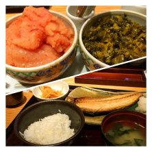 がめ煮定食で お昼ご飯~♪ 明太子、高菜、ごはん、食べ放題。