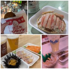 11月9日は近江町市場へ 食べ歩きパラダイスでした 朝からビールと能登牛チーズメンチカツとカニクリームコロッケ ここでもかに面🩷 クラフトビールとうに、のどぐろ、サーモンのお刺身 ハイボールとガス海老、バイ貝のお刺身 市場は解禁したての蟹でいっぱい! あると思ってなかったガスエビもありました めっちゃ甘くて美味しかったです