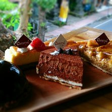 多分、ウブドで今一番美味しいパティスリーCarameL 350円くらいまでで、 かなり完成されたケーキがいただけます。 また、こちらの女性シェフ、英語が上手ですごく気が利く方。 ホテルへ電話を入れてくださり、席で待たせてくださった上、 お水まで出してくださいました。