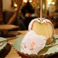 お祭りの屋台で売られている、真っ赤な林檎飴♪ 子供の頃は親に買って貰えなかったので、大人になってからも林檎飴への不思議な憧れが…? そんな林檎飴専門店が新宿にあると聞いて、行ってみました〜♪ イメージと違い、コテコテなコーティングではなく、割とあっさりで、中の林檎は、しゃきしゃきで果汁たっぷり! 女性でもペロっと丸ごと頂けてしまう程、食べやすく飽きないお味! 真っ赤なサンフジは、プレーン・シナモン・キャラメル・メープル・ショコラ、緑の王林は、プレーンとバラエティも豊か! また行きたいお店です♪