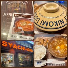 「カレー煮込みうどん」 味噌煮込みうどんの山本屋本店が出店した新しいお店 鯱市のメニューです。 煮玉子をトッピングしました。 あまり辛くないカレーでしたので、汗だくにならずに食べれました。 うどんや具、土鍋に至るまで味噌煮込みと同じです。美味しく頂きました。