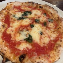 マルゲリータ 平日ランチはこれにサラダ、デザート、ドリンクで1200円 常にウエルカムドリンクはピーチティ 因みにデザートと食後の飲み物がないのは980円 安い!! んでもって、生地の噛みごたえは聖林館みたいな噛み締めるとギュっというような塩気のあるタイプでなかなか美味しいです。 サヴォイや聖林館好きな人にはよいかも。