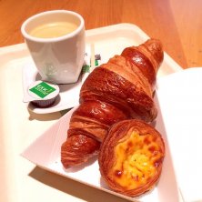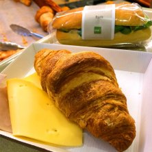 朝ごはん2回目笑 僕はクロワッサンにハムとチーズ、息子はハムとチーズとヨーロッパっぽい葉野菜のサンド。このクロワッサン、€0.8と激安なのにとびきり旨い(≧∀≦) 11時までならコーヒーが€1というのも嬉しすぎる^_^