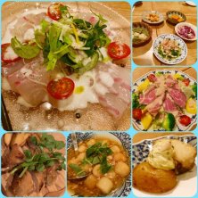 おばんざいやさん とは言え、刺し盛りやハムの盛り合わせ等、つまみが満載 スパークリング、白、赤と、食べ物に合わせワインを選んでくれる、ちょっと優しいマリアージュ 美味しく楽しくいただきました