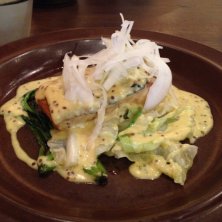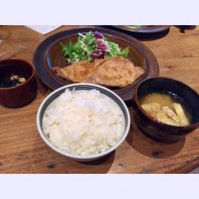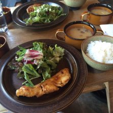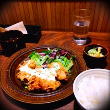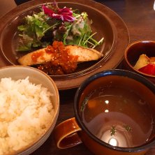 出張の合間にランチ 本日のお魚の定食 サワラの日本酒焼き 野菜ソース