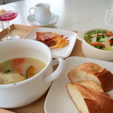 マグロの漬け丼、サーモンといくらの親子丼、明太子タコ丼、石狩汁。 朝からおなかいっぱいー( ´ ▽ ` )ノ