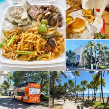 昼過ぎまで時間があったのでトローリーバスに乗ってアラモアナショッピングセンターへ。 隣のウォールマートで大量に買い物。 帰りにショッピングセンターのフードコートでタイフードを食べる。 パッタイとグリーンカレーだがそんなに美味しくないw ハワイカイで収録後、23時回っていたのでどこもお店がやっていない。 しょうがないのでマックを買ってホテルのプールサイドでスタッフと食べる。 夜中までアルコール無しでよく過ごしたw