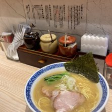 今日の昼。味玉鶏あさりそば 大盛(950円) 千葉県香取産の銘柄鶏『錦爽鶏』とあさり(船橋産であってほしい)を使った淡麗系塩そば。鶏油のえぐみは無く、錦爽鶏とあさりの旨みと香り。個人的にはもう少しあさりを効かせてほしいけど美味!船橋ブランド小松菜と小口切りの葱の歯応えも楽しい。葱の上にちょこんと載っている海苔(船橋産であってほしい)はもっとドーンと散らしてほしいなぁw #昼食 #ランチ #lunch #ラーメン #中華そば #ramen #麺屋二代目弘 #船橋