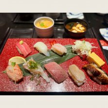 近くのお店で、お昼のすしランチ。関西風で優しく、美味しい味。