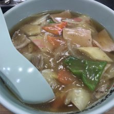 看板メニューは店名に冠する《タンタンメン》ですが、本日は《もやしそば》。 タンタンメン同様、中華鍋で野菜を炒めそこにスープを投入し一杯づつ仕上げるスタイル。お野菜はもやしを中心にニラ,キャベツ,キクラゲ,人参。片栗粉のとろみがつき餡掛けとなります。 中華鍋で仕上げたスープに、餡掛けの蓋が乗りスープは熱々。お肉は入ってませんが、餡がこってりしてるので食べ応えがあります。 スープは鶏ガラベースで優しく安心感のある味わい。麺は弾力がある中太縮れ麺。