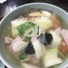 今宵も約束すれど誰も来ず。1人ぼっちで【ニュータンタンメン 東神奈川店】に訪問しました。 看板メニュー《タンタンメン》ではなく、《五目そば》@900円をお願いしました 中華鍋で具材を炒め、そこにスープを注ぎ一杯づつ仕上げるスタイル。 具材は白菜,キクラゲ,人参,ピーマン,玉ねぎ,豚バラ,ハム,ナルト,筍と具沢山。 中華鍋で熱せられ湯気が立った熱々スープは、優し懐かし系のシンプルな鶏ガラベースの塩味。 ブラックペッパーが強めに効いておりドンブリの底はブラックペッパーで真っ黒け。