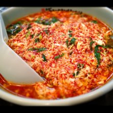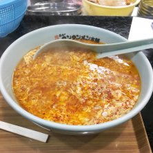 名前こそタンタンメンなれど坦々麺ではありません。具材は挽肉,刻みニンニク,溶き卵と至ってシンプル。中華鍋で鶏ガラスープと韓国辛子を合わせて出来上がり。麺は弾力感のある中太麺。 ベースの鶏ガラスープの旨味がしっかり堪能出来る普通で注文。 さっぱりスープ&ニンニク香り&唐菓子の辛さが三位一体となったタンタンメンは病みつきになる美味さ。 餃子は野菜と肉のバランスが良いふっくら食感。タレを漬けずににそのままが1番美味い。