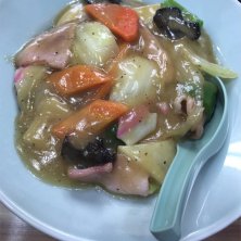 《タンタンメン》が人気の【ニュータンタン】にて本日は《中華丼》を注文しました。 オーダーが入ると中華鍋でお野菜を炒め、トロミを加えてラーメンのスープで味を整えると中華丼の出来あがり。餡の具材は白菜,ピーマン,人参,筍,ナルト,キクラゲ,厚切りハム。 中華丼はメリハリのある濃いめの味付け。ブラックペッパーの存在感が際立ちます。炒めたてなのでトロミは熱々。ふぅーふぅーしていただきました。王道的なTHE中華丼。今日も美味かった。
