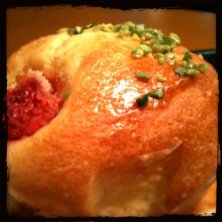 ストロベリーマフィン。ピスタチオのトッピングが色鮮やか。