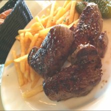 誕生日休暇。パン食べ放題の肉ビストロで、秋田かづの牛のステーキ:P