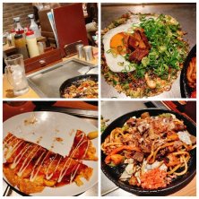 今回のまとめ投稿、写真のピントが全部イマイチのような…(῀( ˙᷄ỏ˙᷅ )῀)ᵒᵐᵍᵎᵎᵎ 19日のランチ。 新大阪駅地下のレストラン街。やっぱり大阪に来て粉ものを食べないで帰るわけにはいかない。焼きそば、お好み焼き、ネギ焼きの3種を味わえるセット熊を注文。 ピントの問題もあるが、もうちょっと見映え良く盛り付けてもらえないかな〜 やっぱ、ミイル的にこれはね、イケてませんな。 厨房も活気溢れて、接客も良く、味もいいんだけどね。 だって、焼きそばの上に乗ってるの何だと思います? 目玉焼きですよ。
