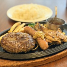 今日のお昼はロイホです( 'Θ')ノ☆ パンケーキのことでいろいろ騒動となっておりますが、それは関係なくハンバーグへ一直線の私( ˘ө˘ ) ソーセージとチキンソテーがセットになったトリプルグリルランチで確かな満足を味わいました♬