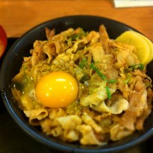 今日の昼は、すた丼高田馬場店で、期間限定のばくだんすた丼でした。
