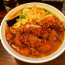 辛味と甘味が融合した濃厚豚骨醤油ベーススープ、シャキシャキ野菜、モチモチでコシある中太麺。スープ、野菜、麺、バランスのとても良い、旨辛ラーメン。テーブルの辛味粉末を少々足して美味しく頂きました!
