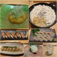 ○初代の白いカレーうどん ○酒彩 ・モッツァレラチーズの自家製味噌漬け ・がんも風山芋の素揚げ ○蕎麦屋の肴 ・そば刺し ・初代風だし巻き卵 ・鴨ロース焼 ○そば焼酎 ・吉兆雲海 ・天山戸隠 どれも美味しかった。 話のネタに白いカレーうどん食べたいなって軽い気持ちで行ったのに、結局そば焼酎飲みながらいろいろ食べてしまった。 そしてどれも美味しかった。 そば刺しは初めて食べたけど、たしかにそば刺しという名前になるのがわかる料理だった。 カレーうどんもでっかい牛肉が入っててびっくり!