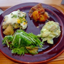 今日は新メニューの蓮根と長芋クルミ和え、小松菜、里芋胡麻和えを選んでみた。味噌汁は茄子他野菜沢山。 こういうカフェで凄い大声でビジネスの話しをする男性2人。普通の喫茶店にいけば良いのにね。