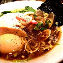 本日のランチ。鶏・煮干・蛤のトリプルSOBA。 気がつけば6月初投稿(^^;; サボり過ぎ〜(笑) 暑いなか、並んで食べてしまいました。お醤油&鶏油が優しく胃にしみます〜(←二日酔い) おっしゃ、午後もがんばろー!╭( ・ㅂ・)و ̑̑