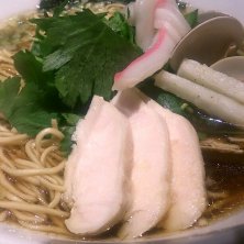 行列で入れず数年気になってた勤務地近くのお店 大山鶏と醤油スープと低温調理のトゥルトゥル鶏チャーシュー、トロットロの豚チャーシューが堪らなく沁みる😊麺は好みの細麺ながら私にはちと硬い 次は蛤ラーメン行ってみたいです
