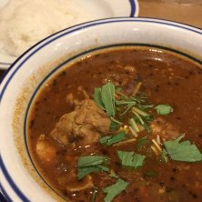 東京の神田に本店が有るインド風カレーの店、エチオピア カリーキッチンのチキンカリー。 大量の野菜を長時間煮込んで瀞みを出し、12種類のスパイスを加えたルーに、大きめのチキンが入ったカレーで、この店の1番人気メニューかつ看板メニューであります。また、辛さも選ぶ事が出来ます。自分は辛口にしました。 カレーに使われているスパイスには、薬草として使われている物ばかりやそうです。チキンと薬草が効いたスパイシーなカレーはとても良く合って美味しかったです。今度はビーフカリーも試してみたいです。