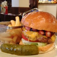 そしてこちらはアニバーサリーバーガー。ここのパティは超粗挽きでステーキみたいな食べ応え〜。アニバーサリーバーガーはパティご50%増しですっごく食べ応えがあります♪ 4周年記念なんだって。