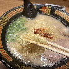 飲んだ後に一蘭 一蘭はセントラルキッチンなので あまり乗らないんですが、 遅い時間でも開いててスルスルっと仕上げには 便利。 普通に美味しいしね。 青ネギトッピング それにしても、替え玉210円の高額には驚き。 これで千円オーバーの高級博多ラーメンw 54