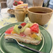 ✨️ア・ラ・カンパーニュ✨️ タルトメリメロ ニルギリ 本当に久しぶりのタルト。定番のフルーツにしました。フルーツの下のカスタードが甘すぎず、くどすぎずちょうど良い。スッキリな後味のニルギリとも相性良き。 美味しかった!