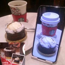待望の 本日 (11/3) 発売 iPhone誕生10週年記念モデル iPhone X (テン) 事前予約で速攻ゲット! フレームレスで 画面デカ! これでまた投稿が 楽しみに ^_^ スタバの恒例 Xmasホリデーシーズンブロモ の紙カップで 「Sドリップ 」¥300と 新商品 「ショット&チョコレート」 ¥496を スタバの オリジナルチョコレートを 練り込んだケーキに エスプレッソショットを注ぎ ホイップをトッピング エスプレッソと 底に敷いたチョコレートが 溶け合い たまらない旨さ!