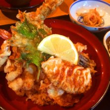 海老と穴子の天丼!お椀からはみでます〜 おいしいけど出てくるのに時間かかる…