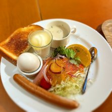 今朝はモーニングへ。 珍しくスープ付きにしたのに、ぬるいを超えて冷たいくらいだったじゃがいもポタージュ…残念過ぎる。 トーストも焼き立てではなくて冷めてたし… のんびりできるし、パンも色々食べれて好きなんだけど、忙しかったのかな? 次回来店時は熱々で提供されるといいな。