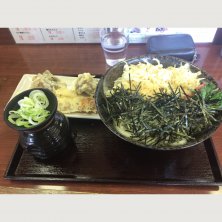 昨夜アド街に出ていて、今日は臨時営業との事なので久しぶりに行ってきました😋 昼時だったのですが思ったほど混んではなく、入店して券売機にてちくわ天となす天購入。着席後ライセンス提示して、お会計を……受け取ってもらえず😭 着丼してみたら、麺が中盛(基本Deathは並のみ)天ぷらもえび天が増えてる😂 サービスされすぎてこれで300円🤣 ご馳走様でした😋